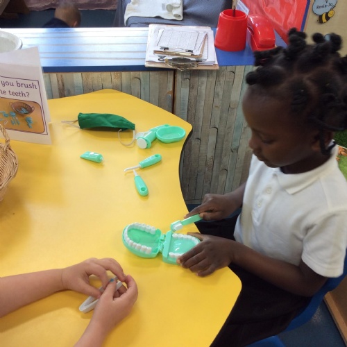 The children have been taking part in different activities and have been talking about the importance of tooth brushing and healthy eating. We have been pretending to be dentists, reading stories about teeth, cleaning teeth in funky fingers and making our own healthy smoothies. The older Reception children have also been writing about how they would catch the tooth fairy.
