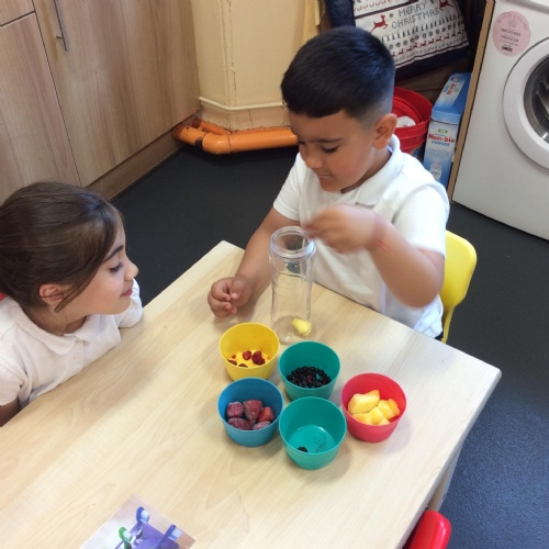 During Jigsaw the children were learning about healthy foods and unhealthy foods. They had to sort the shopping and decide if it was a healthy food or an unhealthy food. The children were also able to taste lots of different healthy foods such as, grapes, cherry tomatoes, apricots and pea pods. They knew that they had to eat lots of healthy foods to help them grow big and strong but that having a little treat sometimes was also ok.